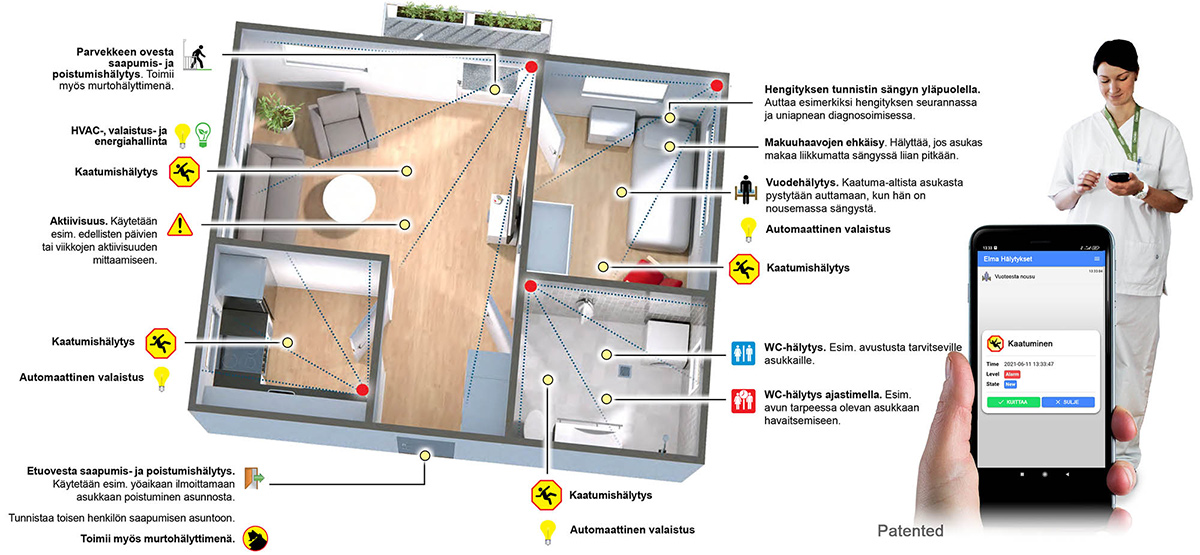 Elma® ja Elsi® -käyttöliittymä rutiinikierroksien vähentämiseen ja asukkaan hyvinvoinnin analysointiin